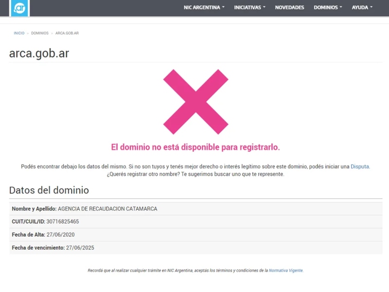 Uno de los supuestos problemas que surgieron tras el anuncio de la disolución de la Administración Federal de Ingresos Públicos (AFIP) es la disponibilidad del dominio de internet para la nueva agencia ARCA.