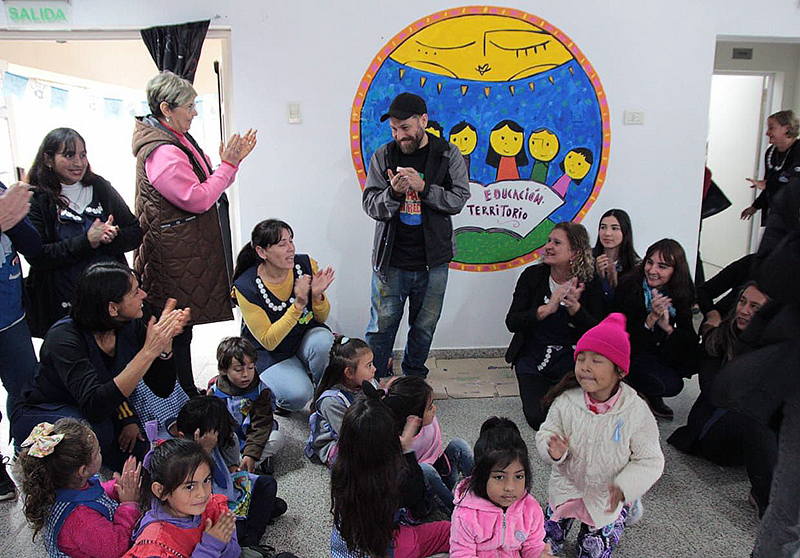 Además, durante la jornada, el reconocido artista plástico Luciano Acosta, junto a los niños y docentes, pintó un mural en una de las paredes del club, dejando el testimonio vivo de “Somos Educación en Territorio”.