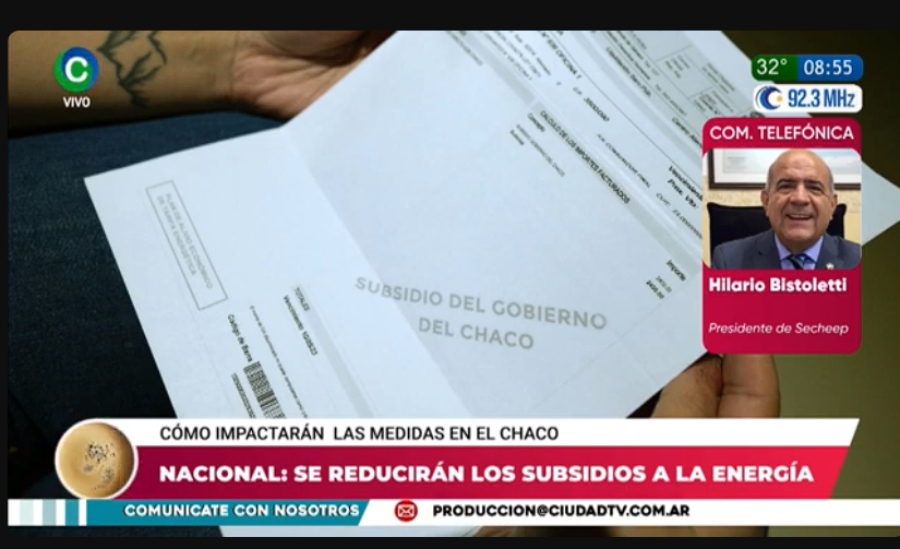 “En realidad es poco claro el anuncio, habla de un recorte, pero no de un porcentaje. Por lo tanto, hasta que no tengamos el porcentaje, no podemos calcular cuál es la medida que va a impactar en la provincia esa quita de subsidio”, sostuvo el funcionario y aseguró que están “atentos” a las definiciones sobre esta medida anunciada, “para cuando inmediatamente tenerla hacerla pública así todos pueden saber en qué medida va a ser el recorte del subsidio”, sostuvo el titular de la empresa SECHEEP, Hilario Bistoletti, en dipalogo con CIUDAD TV.