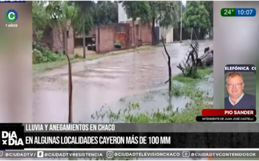 El intendente de Juan José Castelli, Pío Sander, dialogó con CIUDAD TV luego del temporal que afectó a gran parte de la zona con un registro que superó los 100 milímetros de lluvia caídos. “Tuvimos esta semana dos lluvias, una el martes con unos 50 milímetros aproximadamente, y otra esta madrugada con 70 y hasta 100 en diferentes lugares de la ciudad. Fue muy intensa, llovió en pocos minutos alrededor de las 4 de la madrugada”, comentó el jefe comunal.