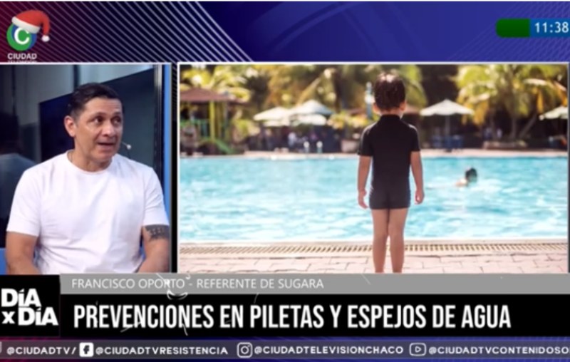 Francisco Oporto, delegado chaqueño del Sindicato Único de Guardavidas y Afines (SUGARA), visitó los estudios de CIUDAD TV para dialogar sobre las acciones preventivas a tener en cuenta para quienes tienen piletas, sean privadas en sus propiedades o en espacios recreativos.