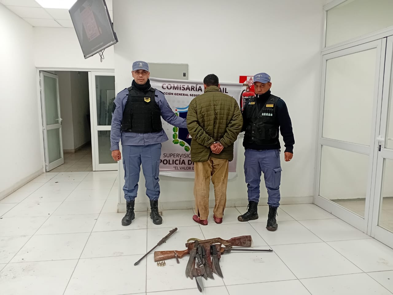 Ante ello, los agentes decidieron ingresar al domicilio y reducir a un hombre de 38 años quien tenía en la mesa de su casa siete cuchillos de distintos tamaños y un aire comprimido modificado a calibre 22 con 20 cartuchos.