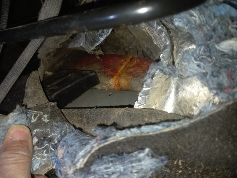 Al comenzar con la inspección del vehículo, los uniformados observaron que los tornillos que fijan los asientos no se encontraban ajustados y la alfombra que recubre el piso estaba deformada.