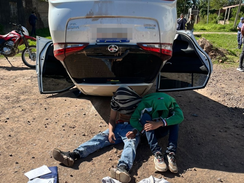 El Toyota Yaris habría sido sustraído hoy por la mañana de Frondizi al 1100 aproximadamente, los detuvieron hace pocos minutos en Calle San Salvador.