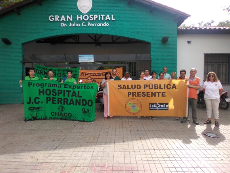El pasado lunes 26 de febrero, la Asociación de Profesionales, Técnicos y Auxiliares de Salud Pública del Chaco (APTASCH) realizó un paro de actividades por 24 horas, que se dio en el marco de una Jornada Nacional de Lucha impulsada por Fesprosa en todo el país. En la ocasión, el gremio chaqueño realizó Asambleas en diferentes puntos de la provincia, y alertaron que “en caso de no existir convocatoria al diálogo, continuaremos las medidas de fuerza”.