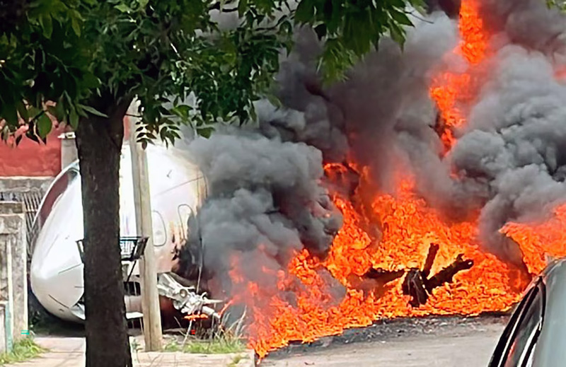 Un avión privado que venía de Punta del Este despistó este miércoles cuando intentaba aterrizar en el aeropuerto de San Fernando, provincia de Buenos Aires, chocó contra varias casas y un auto y luego se prendió fuego. Se confirmó que murieron el piloto y el copiloto, las únicas personas que viajaban en la aeronave; pero no descartan más víctimas.