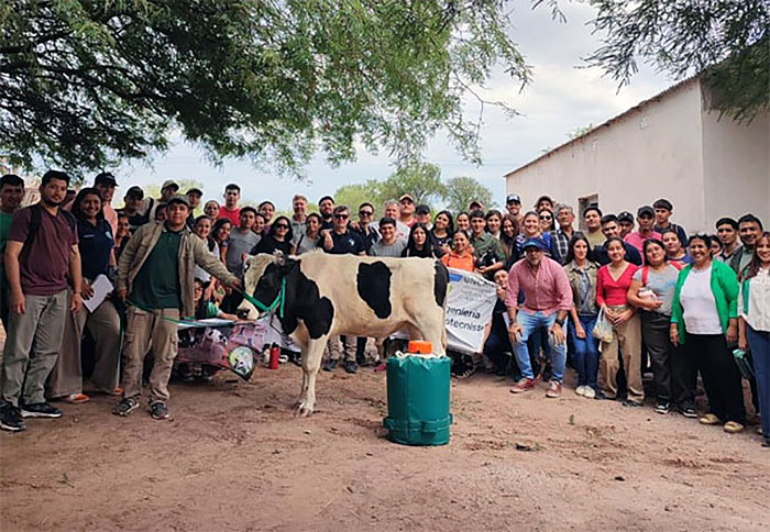 El profesor Pablo Marini, titular de la cátedra de Lechería de la UNCAus, relató una experiencia destacada que se llevó adelante junto a estudiantes y productores de la zona oeste del Chaco, en la escuela N° 51 de Taco Pozo, donde se logró un importante avance en materia de genética adaptada a las condiciones locales.