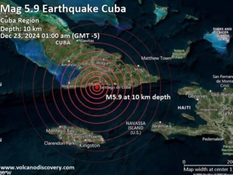 Previamente, el periódico La Demajagua, citando al sitio especializado Volcano Discovery, había informado de una magnitud de 5,9 grados y localizado su epicentro a 55 kilómetros al sureste de la ciudad de Bayamo.