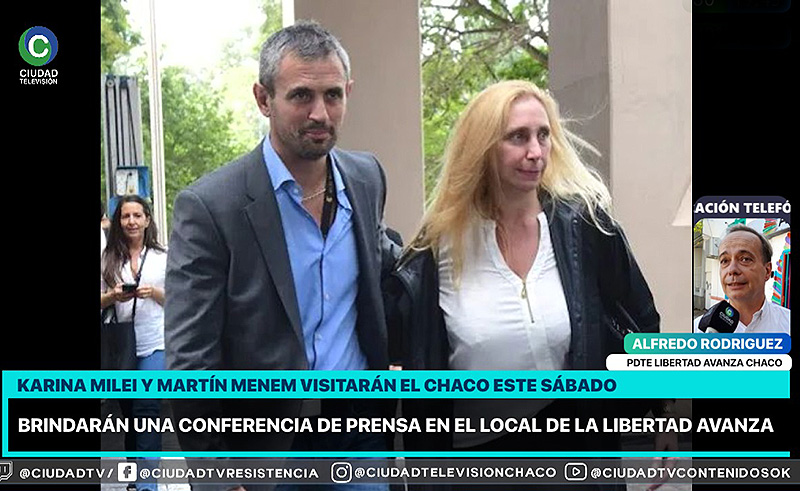 En el marco de la gira nacional que comenzó luego del acto del lanzamiento oficial de La Libertad Avanza (LLA) a fines de septiembre en Parque Lezama, Karina Milei y Martín Menem se presentarán este fin de semana en Chaco y Corrientes. El presidente de LLA en la provincia, Alfredo “Capi” Rodríguez, adelantó en declaraciones para CIUDAD TV, que ambos “arribarán a Resistencia este sábado y habrá una conferencia de prensa a las 12.30 en la sede local del partido libertario, en avenida Paraguay 145”.