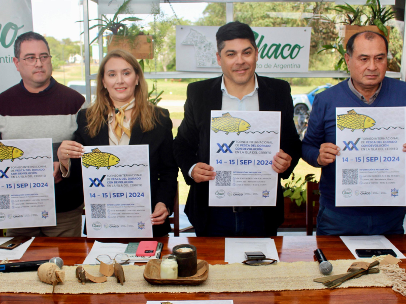 Luego de cuatro años de espera, este año regresa a la Isla del Cerrito el Torneo Internacional de Pesca del Dorado con Devolución, que promete una gran convocatoria. Se trata de la 20° edición del evento en el que se darán cita pescadores de distintos puntos del país y países vecinos, el 14 y 15 de septiembre próximo. Así lo anunciaron, en conferencia de prensa, los presidentes del Instituto de Cultura, Mario Zorrila y de Turismo, Verónica Mazzaroli, junto a referentes de la Federación Chaqueña de Pesca y del municipio anfitrión.