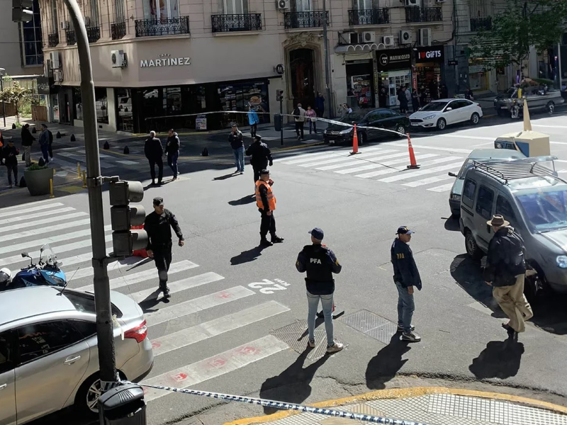 Tras ello, efectivos del Departamento Unidad de Investigación Antiterrorista (DUIA) y de Explosivos de PFA acudieron al edificio situado en avenida de Mayo al 700 para realizar las inspecciones de rigor, al tiempo que se dispuso un corte total de tránsito de manera preventiva en ese tramo de la avenida.