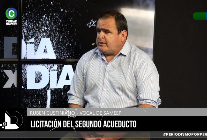 Rubén Custiniano, vocal de la empresa SAMEEP, visitó los estudios de CIUDAD TV y brindó detalles de las obras que faltan para finalizar el Segundo Acueducto del Interior, ejecutado en 83% durante la gestión de gobierno anterior.