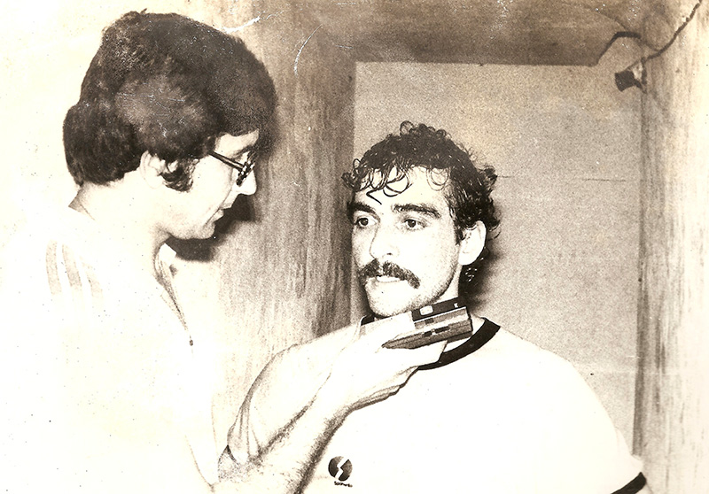 Momento histórico. El colega Miguel Omar Retamoso reporteando a Víctor López.