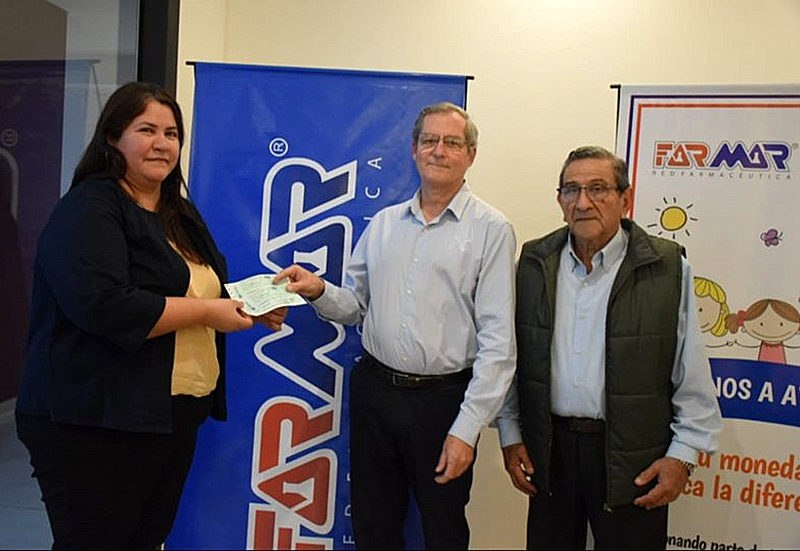 Se entregó el cheque de lo recaudado en el trimestre del programa solidario "Tu moneda marca la diferencia". Los clientes donan el redondeo de su vuelto y Farmar dona el mismo monto en beneficio de más de 250 familias en cada una de las 50 parroquias a las que asiste Cáritas.