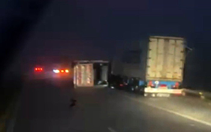 Algunos videos subidos a las redes sociales muestran el panorama en la autovía, entre Cañada de Gómez y Tortugas, con “entre 6 y 8 camiones volteados por el viento”.