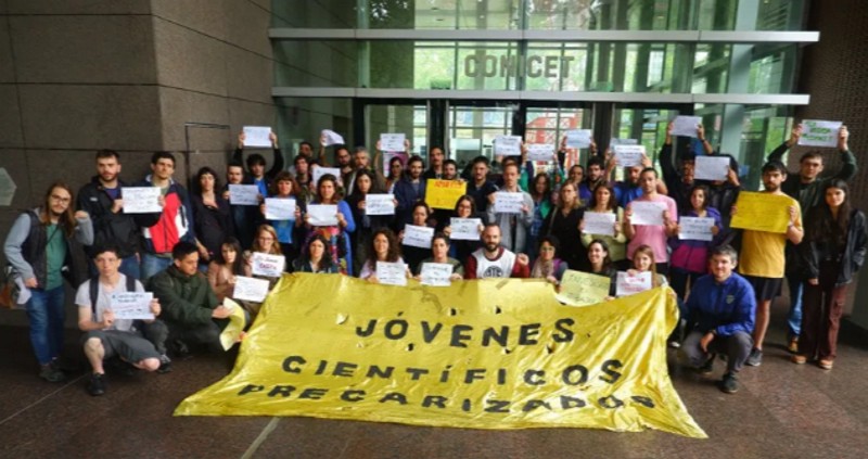 Becarios posdoctorales del CONICET luchan por la carrera de investigacion.