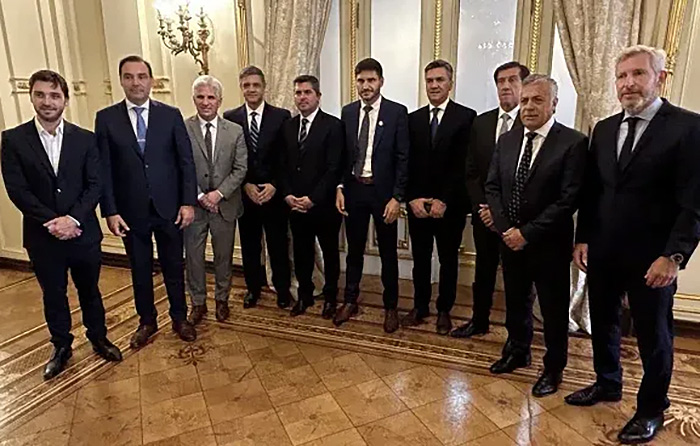 Estuvieron presentes Rogelio Frigerio (Entre Ríos), Ignacio Torres (Chubut), Jorge Macri (CABA), Claudio Poggi (San Luis), Marcelo Orrego (San Juan), Maximiliano Pullaro (Santa Fe), Alfredo Cornejo (Mendoza), Carlos Sadir (Jujuy), Leandro Zdero (Chaco) y Gustavo Valdés (Corrientes).