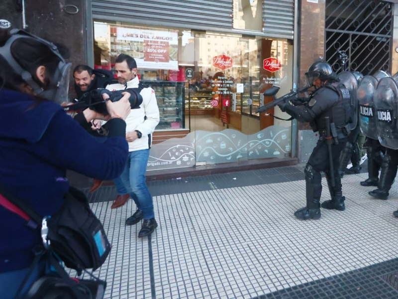 “No hay protocolo que permita disparar a 10 centímetros, de la cintura para arriba, al lado de uno. Unos centímetros más arriba y la historia es otra. No es joda lo que está pasando y cómo están avanzando y reprimiendo. Reitero, si hacen así con una cámara prendida, imagínense lo que hacen con una cámara apagada”, concluyó.