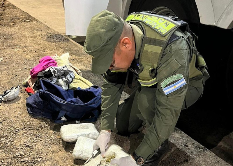 Los efectivos, junto con el can y su guía, inspeccionaron un transporte de pasajeros en un control vial y hallaron la droga acondicionada en cuatro paquetes ocultos dentro de un bolso.