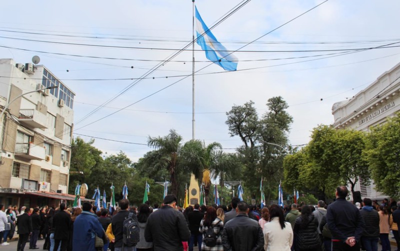 La ceremonia en homenaje al símbolo nacional argentino se inició con el izamiento de la Enseña Patria en el Mástil Mayor de Resistencia, donde se entonaron las estrofas del Himno Nacional Argentino, a cargo de la Banda Municipal de Música “Luis Omobono Gusberti”. Luego continuó en la Peatonal con entrega de escarapelas a la comunidad.