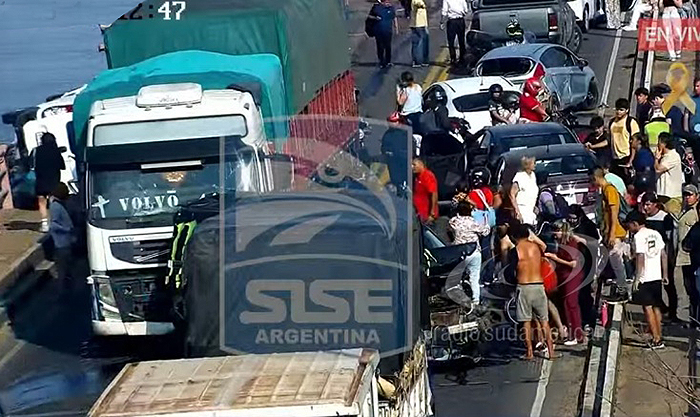 El impacto fue de tal magnitud que dos autos estuvieron a punto de caer del viaducto hacia las aguas del río Paraná, que separa ambas capitales, mientras que otros dos motociclistas escaparon de milagro de ser arrollados por los otros autos que arrastró el camión.