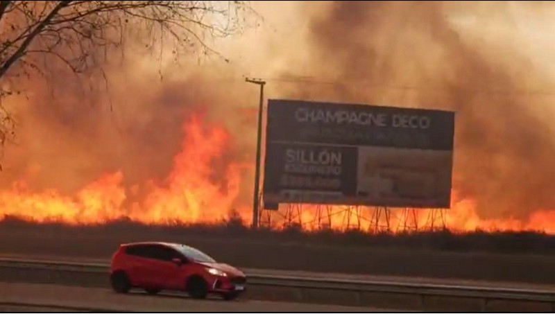 Una vez más, las condiciones climáticas son favorables para una rápida propagación de las llamas. Hay fuertes ráfagas de viento norte que superan los 60 km/h, la temperatura es elevada, por encima de los 25 grados, y la humedad relativa cayó por debajo del 20%.
