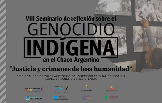 Se encuentra abierta la inscripción al VIII Seminario de Reflexión sobre el Genocidio Indígena en el Chaco Argentino, titulado “Justicia y crímenes de lesa humanidad”, que se llevará a cabo el 3 de octubre de 2025, de 8:30 a 13:30 horas, en el Auditorio del Superior Tribunal de Justicia, sito en López y Planes 215, Resistencia.