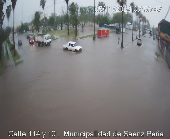 En Sáenz Peña, una de las localidades más golpeadas por las lluvias, se reportó que gran parte de las calles céntricas y varios barrios se encuentran anegados. Ante esta situación, algunos vecinos han tomado medidas por su cuenta para restringir el tránsito, utilizando vehículos, cables y alambres para bloquear las calles y así evitar el paso de automóviles por las áreas más afectadas.