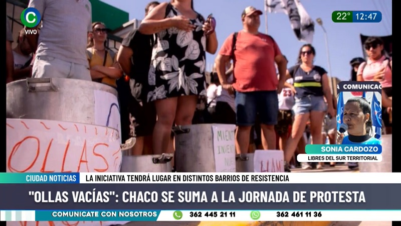 Como parte de la Jornada Nacional de protesta que tendrá lugar en todo el país este miércoles, Libres del Sur Territorial realizará intervenciones con ollas vacías en los barrios de Resistencia y en más de 25 localidades del interior de la provincia, para visibilizar la situación que pasan las familias en situación de vulnerabilidad.