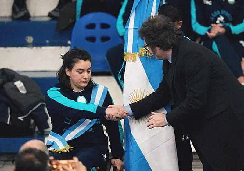 Con un video breve pero lapidario en su perfil de Instagram, Constanza Garrone expuso al presidente de la Nación por el desfinanciamiento a los deportes amateurs durante los casi siete meses que lleva de gestión. Allí, primero aparece una foto de “Coty” saludando al jefe de Estado y, de fondo, la reconocida canción La Argentinidad al Palo, de La Bersuit Vergarabat. Con los colores del país de fondo y en las letras, publicó el siguiente mensaje: “Un honor enorme llevar la bandera más hermosa del mundo a París. Yo sí prometo cuidarte y defenderte como realmente te merecés. Mucho más en estos tiempos”.