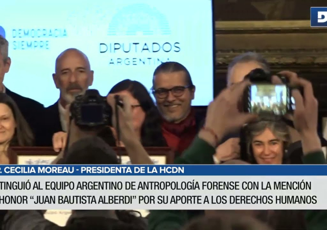 La Cámara de Diputados otorgó la “Mención de Honor Diputado Nacional Dr. Juan Bautista Alberdi”, al Equipo Argentino de Antropología Forense (EAAF), en reconocimiento a su invaluable aporte al derecho humanitario internacional, al respeto por el derecho individual y colectivo a la identidad, la Verdad y la Justicia.