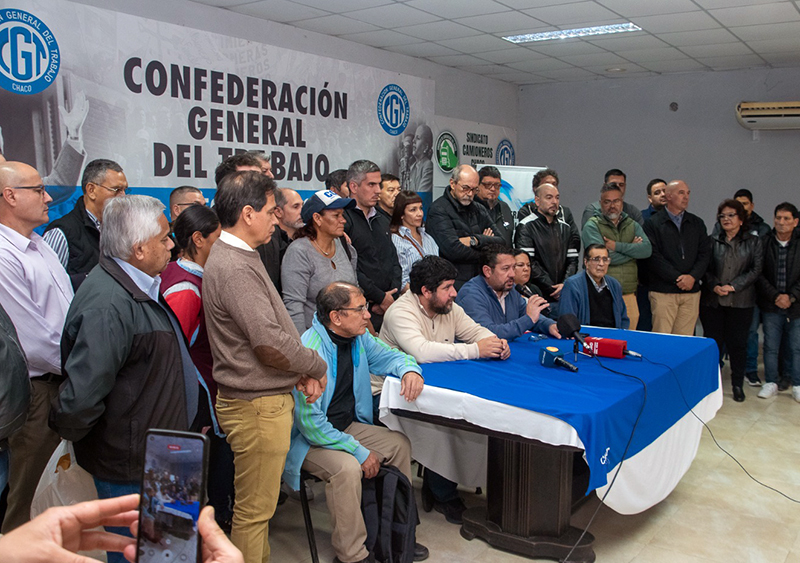 En contacto con la prensa, el cosecretario general de la CGT Chaco, Adrián Bellomi, valoró la presencia ”de todo el arco de nuestra organización”. Adelantando que, “anoche estuvimos reunidos en un plenario donde se resolvió llevar a cabo esta estas acciones”.