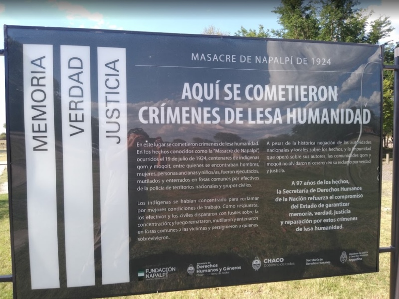 La organización reclamaba “daños y perjuicios, lucro cesante, daño emergente y daño moral ocasionados por los actos perpetrados por fuerzas de seguridad y otras autoridades nacionales el 19 de julio de 1924 y días subsiguientes, en el Paraje La Aguara Napalpí, entonces Territorio Nacional del Chaco”.