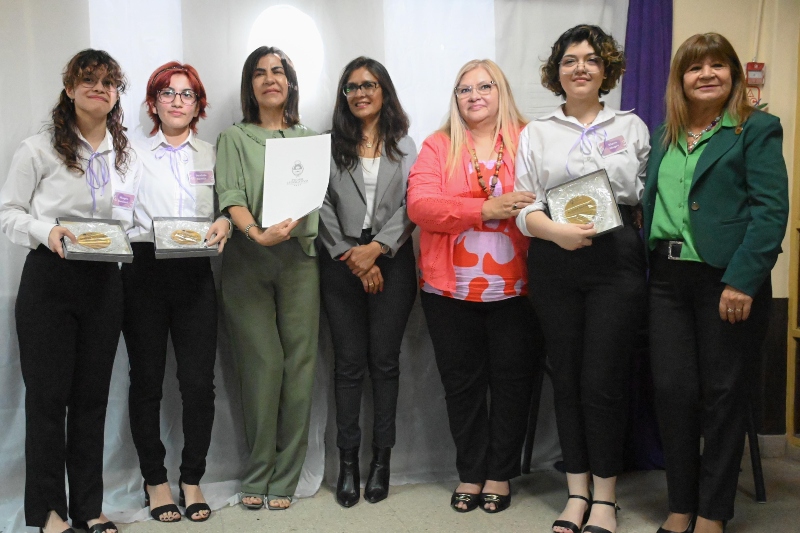 El proyecto fue declarado de interés legislativo y provincial, y las legisladoras entregaron placas a las estudiantes Shayen Bonfanti, Abigail García Espíndola y Kiera Alegre Encinas, creadoras de la App. Y la Resolución la recibió la directora de la escuela, Ana García.
