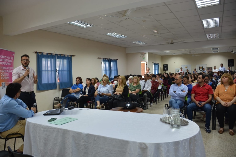 Luego, la capacitación continuó en la Sede de la Universidad Nacional del Nordeste de General Pinedo, con amplia concurrencia de estudiantes de colegios secundarios, personal de salud, integrantes del concejo municipal y contó con el testimonio emotivo de personas transplantadas y familiares de donantes.