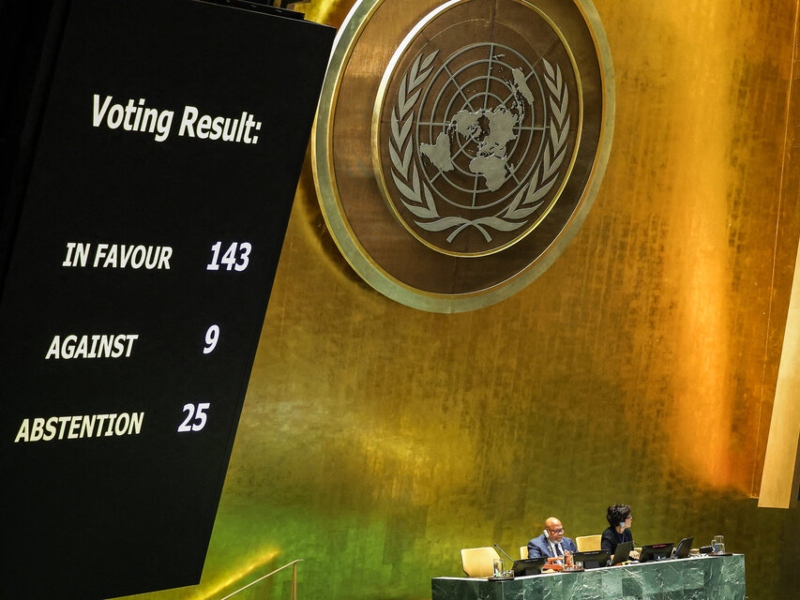 La Asamblea General de la ONU votó mayoritariamente este viernes a favor de la adhesión de Palestina como estado miembro del organismo, una decisión no vinculante aunque simbólica que generó repudio por parte del Gobierno israelí y la oposición de países como Estados Unidos y Argentina.