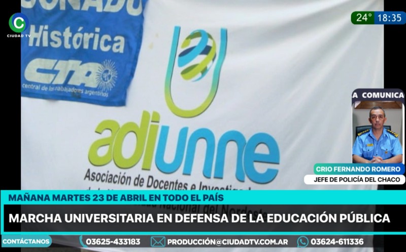 El Jefe de Policía del Chaco, comisario general Fernando Romero, aseguró que se va a acompañar la marcha por la universidad pública de este martes para que todo vaya con normalidad. Se analizará el grado de convocatoria, y tratarán que no haya cortes de calles ni rutas. Informo a CIUDAD TV que se afectarán entre 200 y 300 efectivos al operativo.