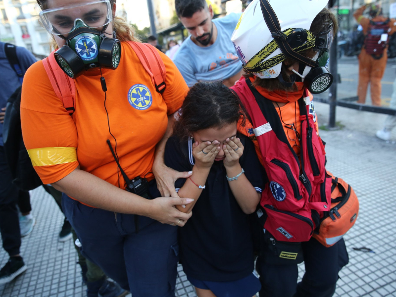 Colombo, que estaba allí, tenía la máscara de boca y nariz, pero no tenía nada que le protegiera los ojos, donde llegó el gas. En ese momento, salió del tumulto para ver si podía ser asistida de alguna forma, pero se dio vuelta para no perderse la situación. “Veo que atrás mío estaba esta situación que acabo de tuitear, que es la nena con las dos rescatistas. Entonces les hice las seguí hasta que la entraron en una parrillita que está por Rivadavia y Callao. Entró la nena con las rescatistas a la parrilla, que la abrieron para que puedan limpiarla, y después yo me fui a buscar un poco de óleo calcareo para limpiarme yo”, contó a El Destape.