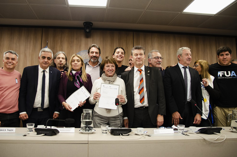 El Consejo Interuniversitario Nacional (CIN), representantes de la Federación Universitaria Argentina (FUA) y del Frente Sindical de Universidades Nacionales presentaron a la Comisión de Educación de la Cámara de Diputados de la Nación el anteproyecto de ley en el que trabajaron de manera conjunta para “garantizar la protección y el sostenimiento del financiamiento de las instituciones universitarias públicas”, según reza el primer artículo.