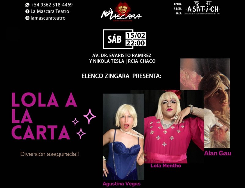 Este sábado 15 de febrero a las 22:00, La Máscara invita al público a disfrutar de “Lola a la carta”, un show de comedia e improvisación que promete una velada inolvidable. El talentoso elenco, conformado por Lola Mentho, Alan Gau y Agustina Vegas, brindará una experiencia interactiva donde los sketches y la creatividad se entrelazan de manera sorprendente.