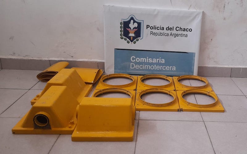 Dentro de las bolsas, los agentes hallaron dos semáforos; los mismos que habrían sido sustraídos de la jirafa de la ruta.
