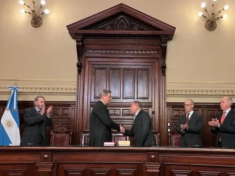 Juez juró por “Dios, la Patria y los Santos Evangelios” ante los cuatro ministros de la Corte Suprema y algunos de sus pares en un acto muy breve que se desarrolló durante la mañana en el Salón Bermejo del Palacio de Tribunales.
