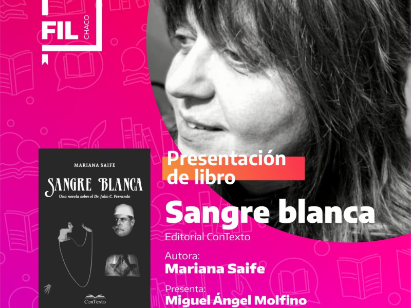 El domingo 5 de octubre, a las 18 horas, en el espacio naranja de la Feria Iberoamericana del Libro Chaco 2025, se presentará la novela” Sangre Blanca” de Mariana Saife editada por Contexto. Estará a cargo del reconocido escritor Miguel Ángel Molfino.
