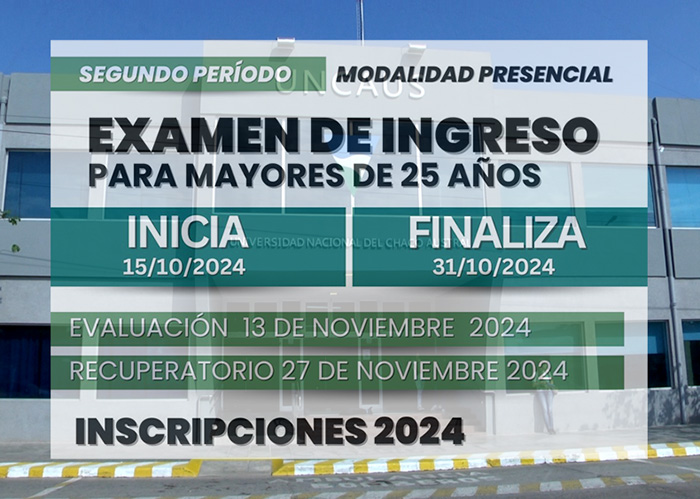 Este procedimiento se realizará de acuerdo al artículo 7° de la Ley de Educación Superior N°24.521, donde se establece con carácter de excepción la inscripción a la Universidad para personas mayores de 25 años; argentinos sin título secundario, siempre que, a través de evaluaciones, demuestren que tienen preparación y/o experiencia laboral acordes con los estudios que se proponen encarar, así como aptitudes y conocimientos suficientes para cursarlos satisfactoriamente.