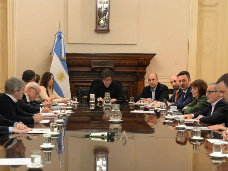 Completaron la lista de asistentes el titular del Banco Central de la República Argentina, Santiago Bausili; el asesor presidencial, Santiago Caputo; y el vocero presidencial, Manuel Adorni.