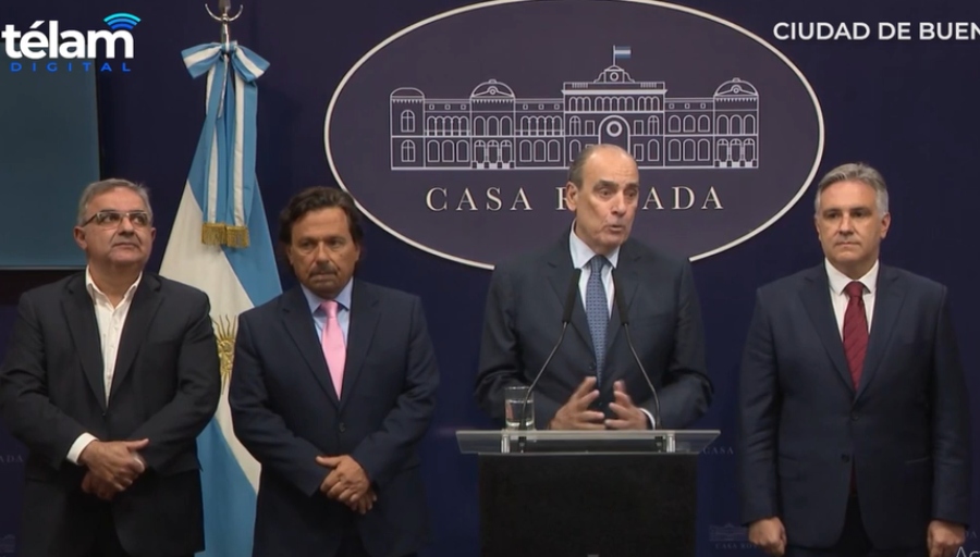 En una rueda de prensa en la Casa de Gobierno, acompañado por los gobernadores de Salta, Gustavo Sáenz; de Córdoba, Martín Llaryora; y de Catamarca, Raúl Jalil, el funcionario nacional indicó que “ha sido una reunión con un espíritu colaborativo y con compresión mutua y recíproca”.
