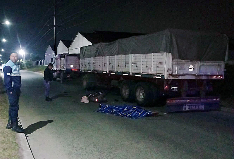 Al llegar al lugar, el personal policial constató que un camión con acoplado estaba estacionado sobre el carril derecho, mientras que a su costado, en la cinta asfáltica, yacía un hombre de 45 años aproximadamente, con una herida en la cabeza. Aproximadamente un metro más adelante, se encontraba una motocicleta de 110cc y varias herramientas esparcidas por el suelo.
