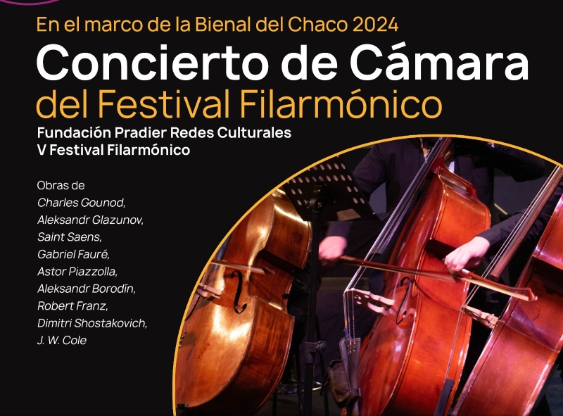 El miércoles 17 de julio a las 20 horas, en el escenario del Complejo Cultural Guido Miranda (Colón 164), se realizará el Concierto de Música de Cámara del V Festival Filarmónico, a cargo de profesores e integrantes de la Orquesta de la Fundación Pradier Redes Culturales.