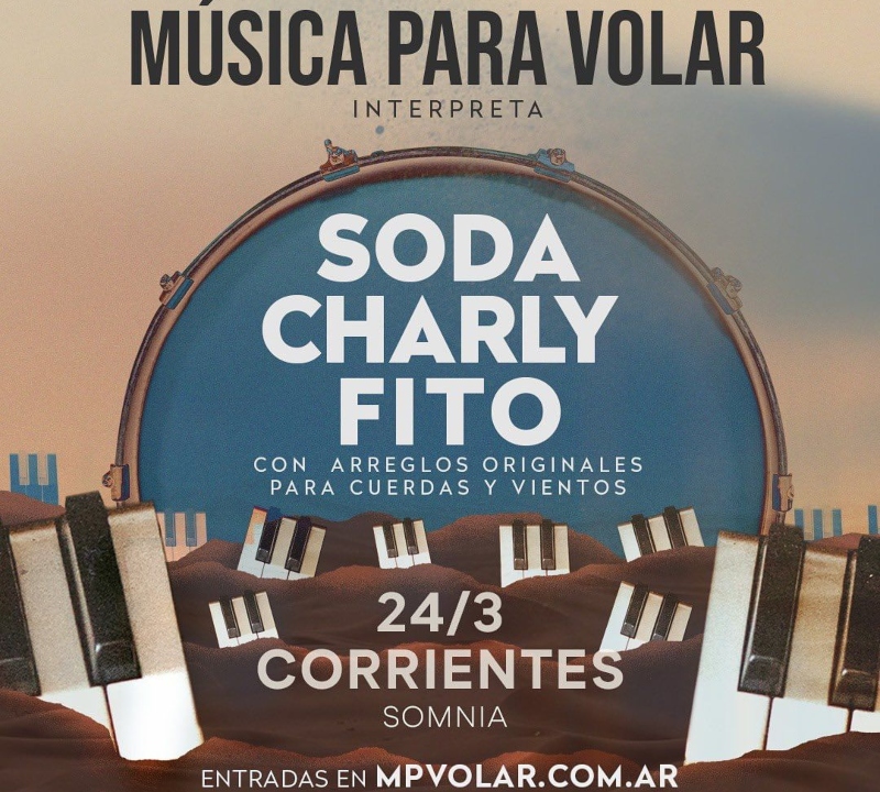 El 24 de marzo la banda llega a Corrientes para brindar un concierto con un cuidadoso y seleccionado repertorio de la obra de Charly García, Fito Páez y Cerati (con Soda Stereo y en su etapa solista). La función comenzará a las 21 horas en Somnia (Av. Centenario 4401), y las entradas ya pueden conseguirse online en passline.com