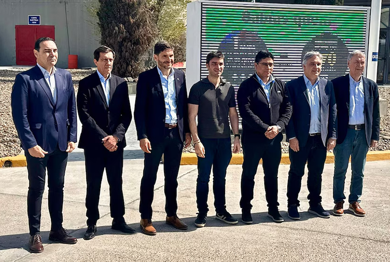 Ignacio “Nacho” Torres recibió en Puerto Madryn a Vidal, Gustavo Valdés (Corrientes), Carlos Sadir (Jujuy), Maximiliano Pullaro (Santa Fe) y Martín Llaryora (Córdoba). Antes de la conferencia de prensa, a las 11:30 en el Hotel Rayentray, los dirigentes visitaron la planta de aluminio ALUAR, donde se reunieron con el presidente de la compañía, Javier Madanes.